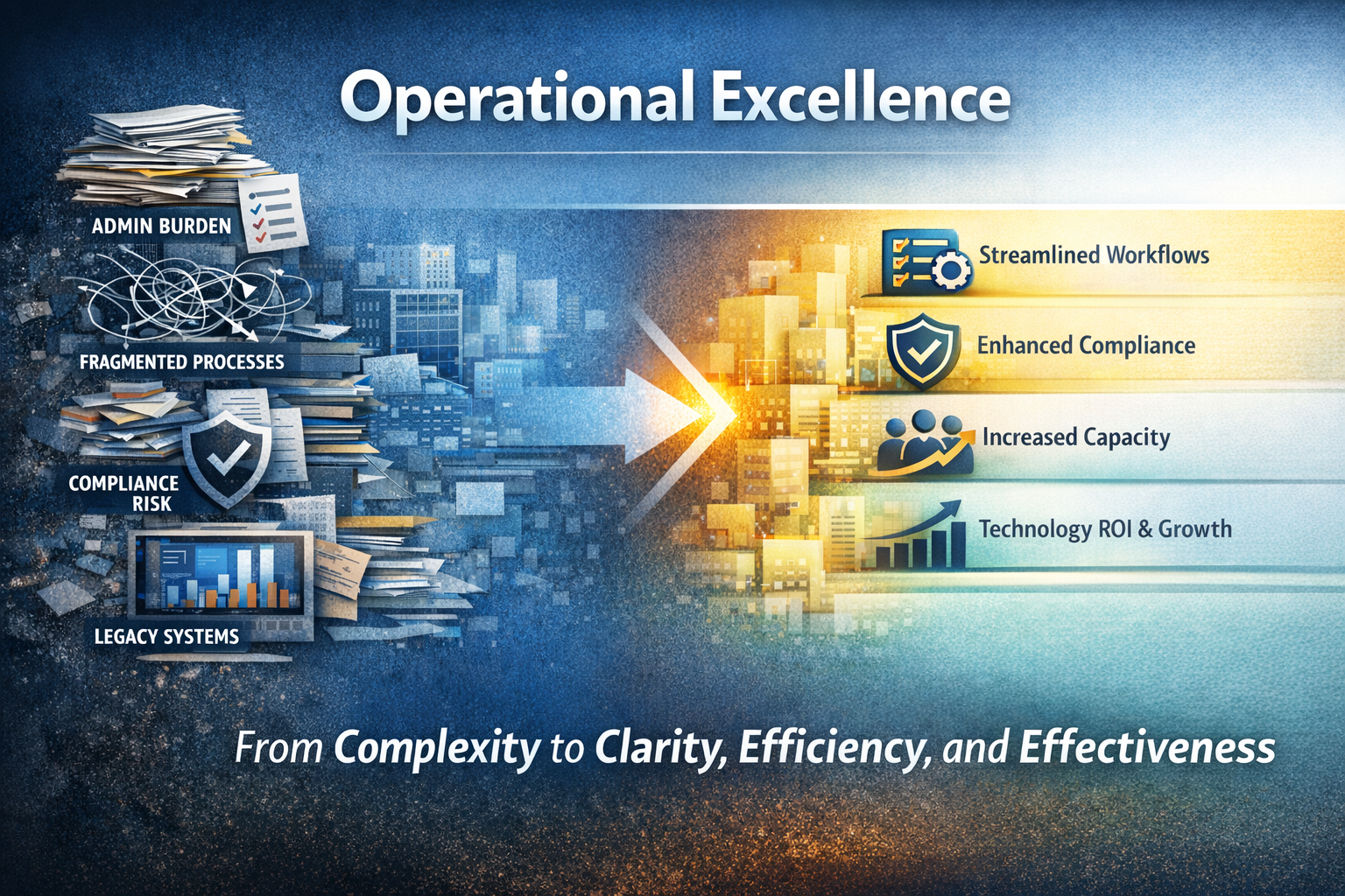 We transform operational strain into disciplined clarity - efficiency and effectiveness.